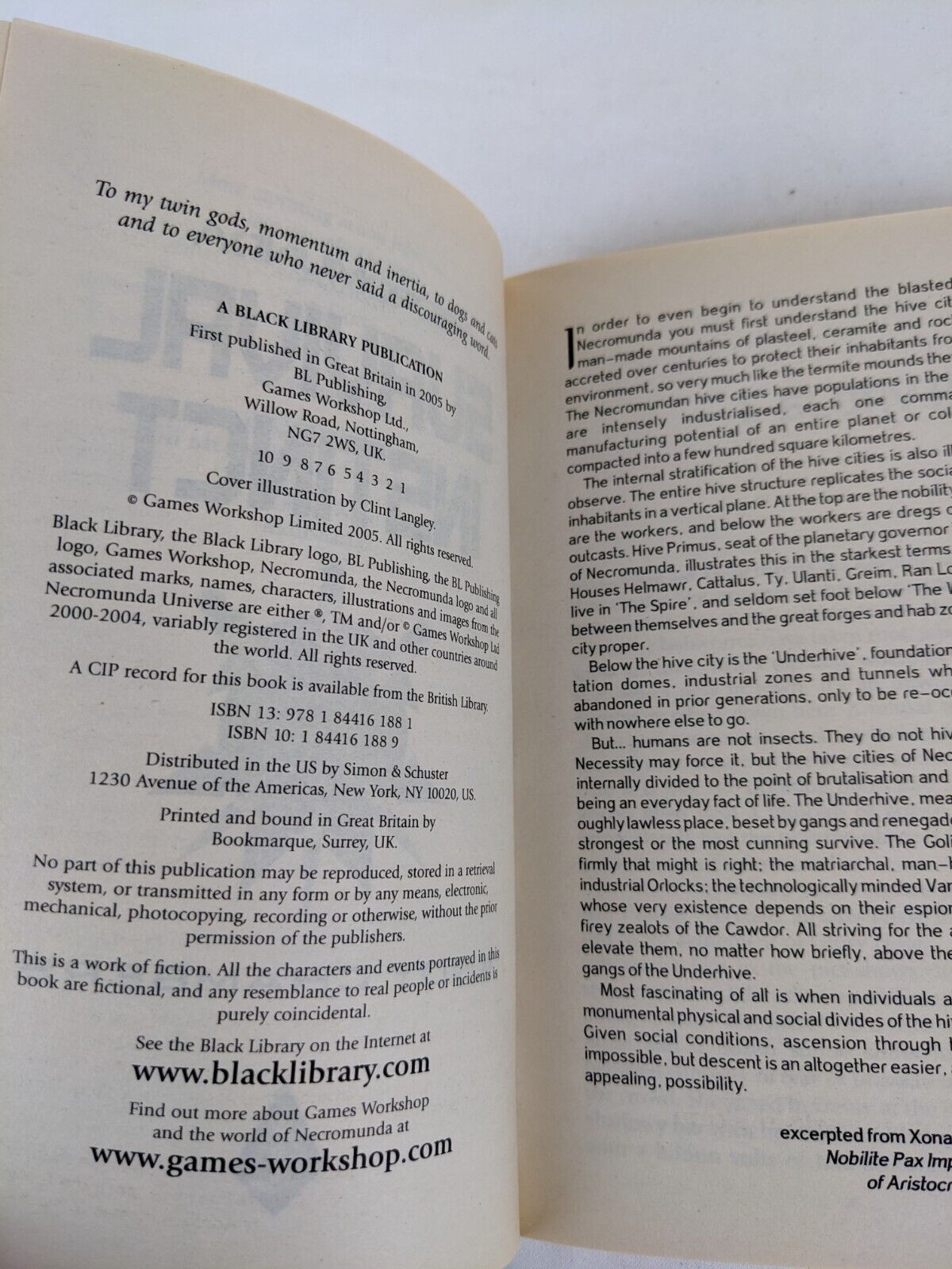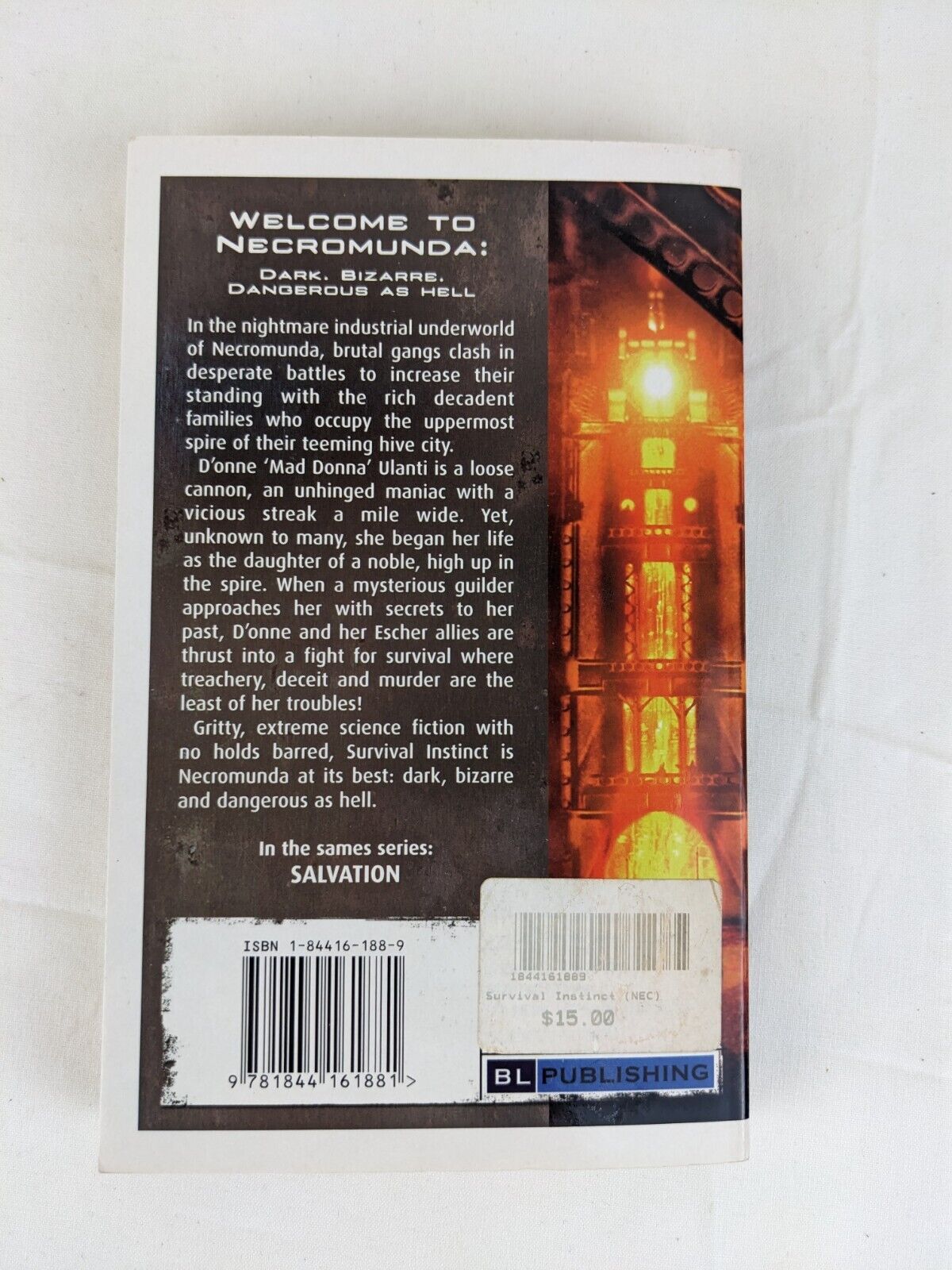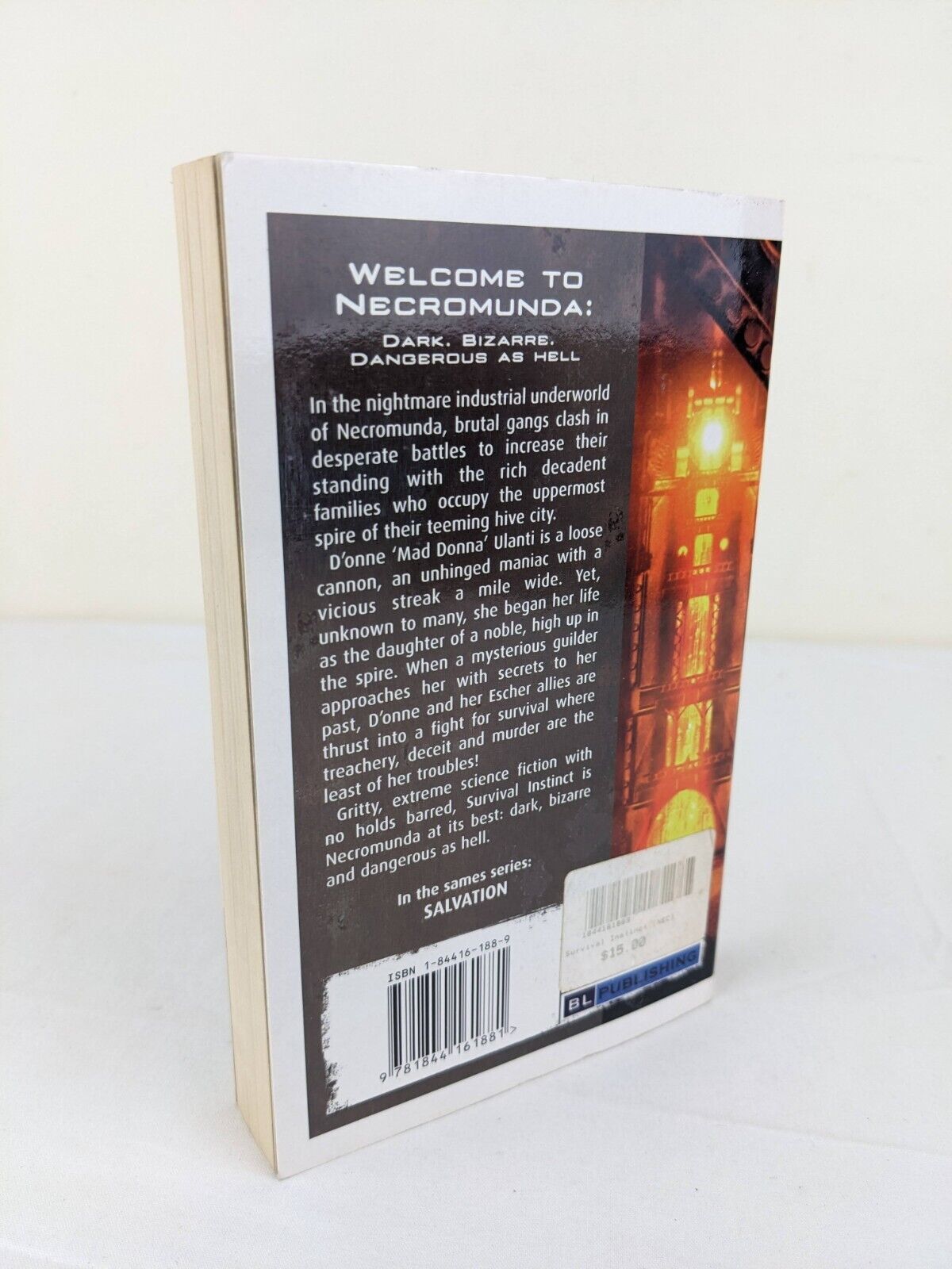 Necromunda: Survival Instinct by Andy Chambers 2005In the nightmare industrial underworld of Necromunda, brutal gangs clash in desperate battles to increase their standing with the rich decadent families who occupy the uppermost spire of their teeming hive city.